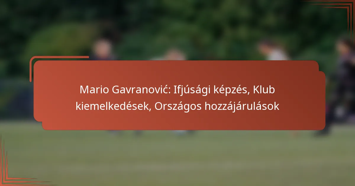 Mario Gavranović ifjúsági képzése a különböző klubokban és akadémiákon való korai részvételével jellemezhető, amelyek formálták képességeit és a labdarúgás iránti megértését. Fejlődését neves edzők és versenykörnyezetek befolyásolták, amelyek megalapozták professzionális karrierjét.