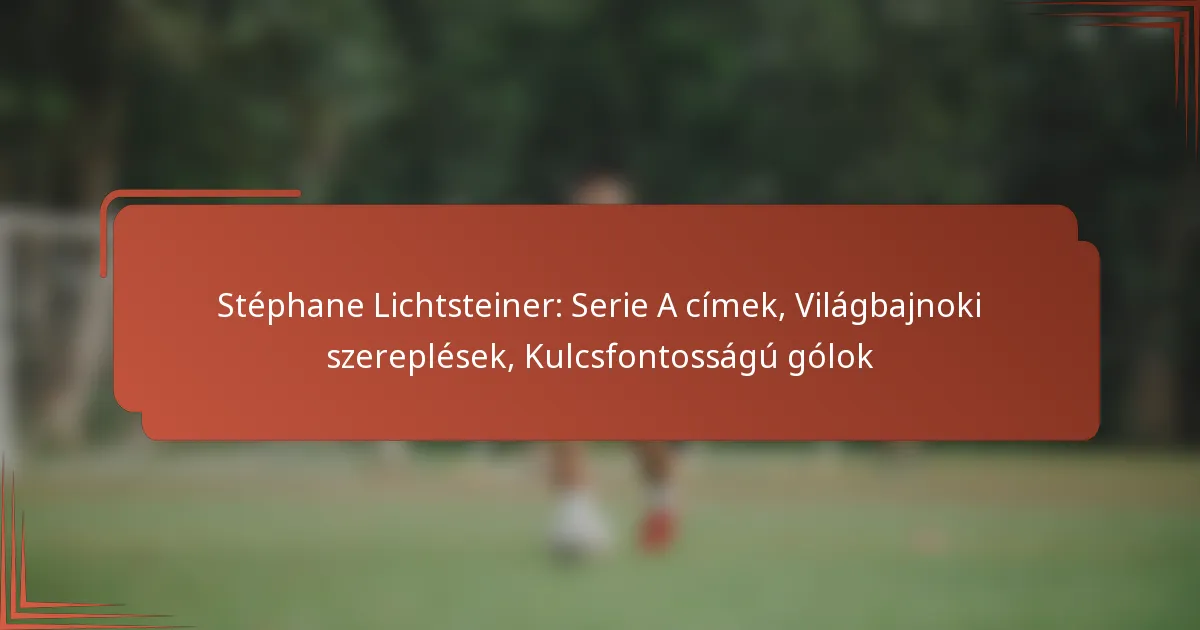Stéphane Lichtsteiner a labdarúgásban elért sikeres karrierjéről ismert, amelyet több Serie A cím, jelentős világbajnoki szereplések és kulcsfontosságú gólok jellemeznek, amelyek meghatározták örökségét. A klub- és a nemzetközi labdarúgásban végzett hozzájárulásai miatt kiemelkedő alakja a svájci sporttörténelemnek.